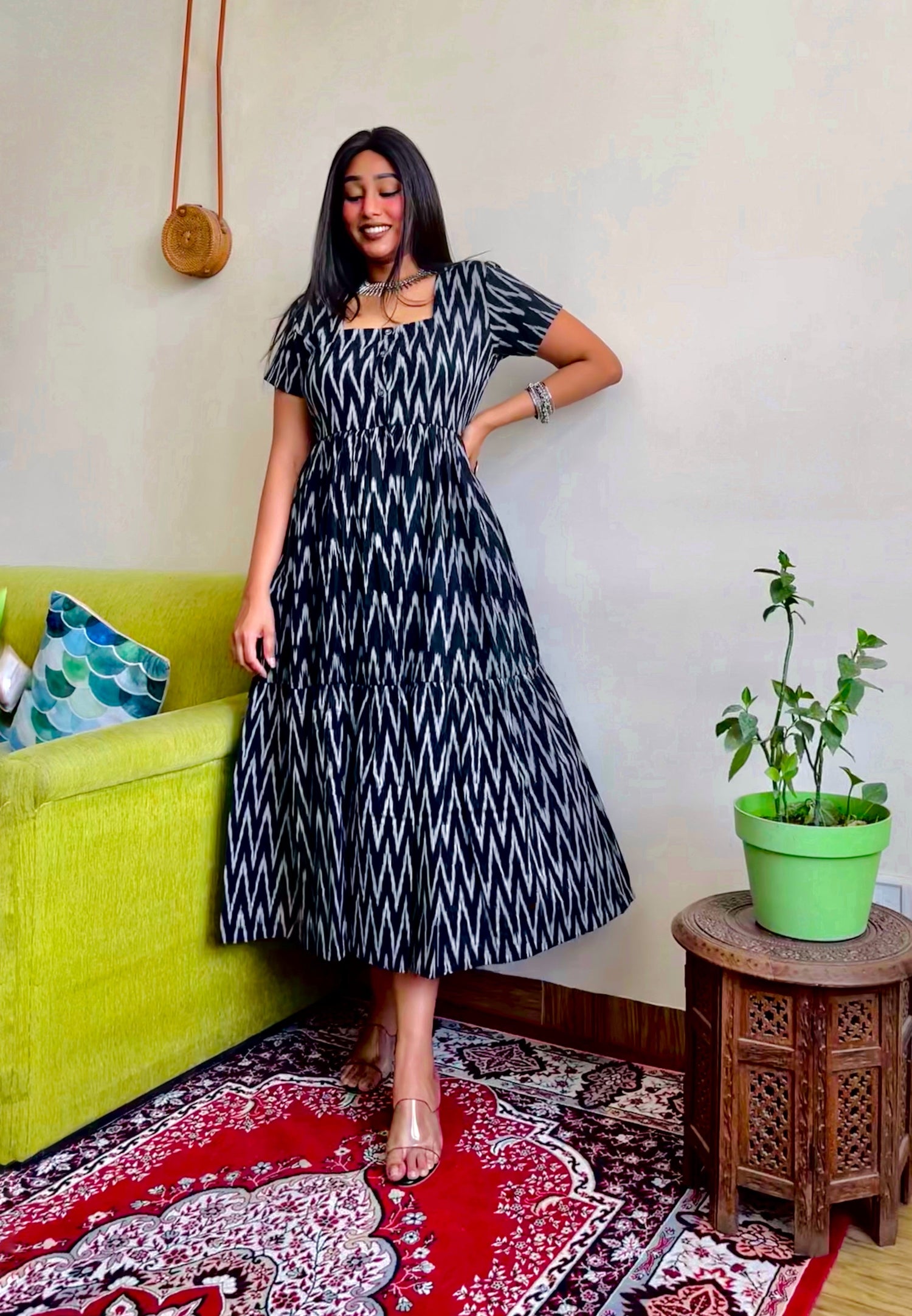 Black Ikkat Maxi Dress
