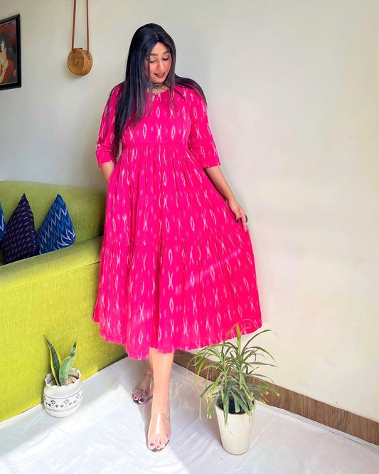 A lovely dress. Good quality material, nice cut and fit. My only disappointment is that I chose the colour as it looked red but got a much browner shade.