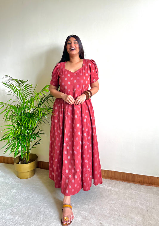 A lovely dress. Good quality material, nice cut and fit. My only disappointment is that I chose the colour as it looked red but got a much browner shade.
