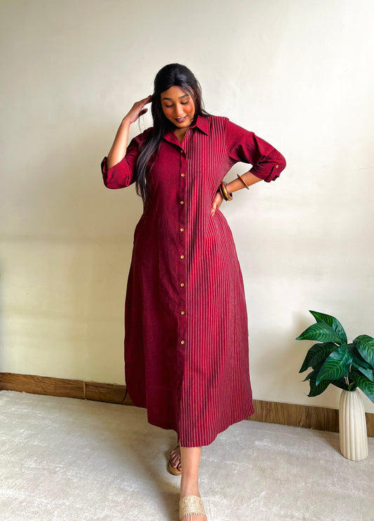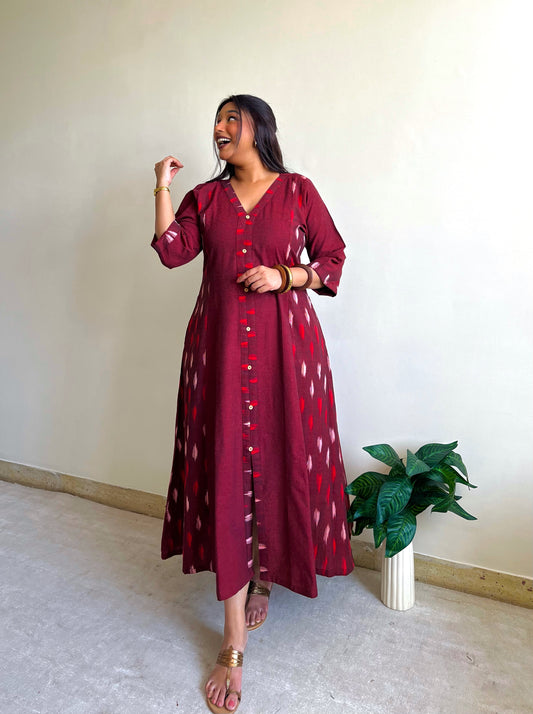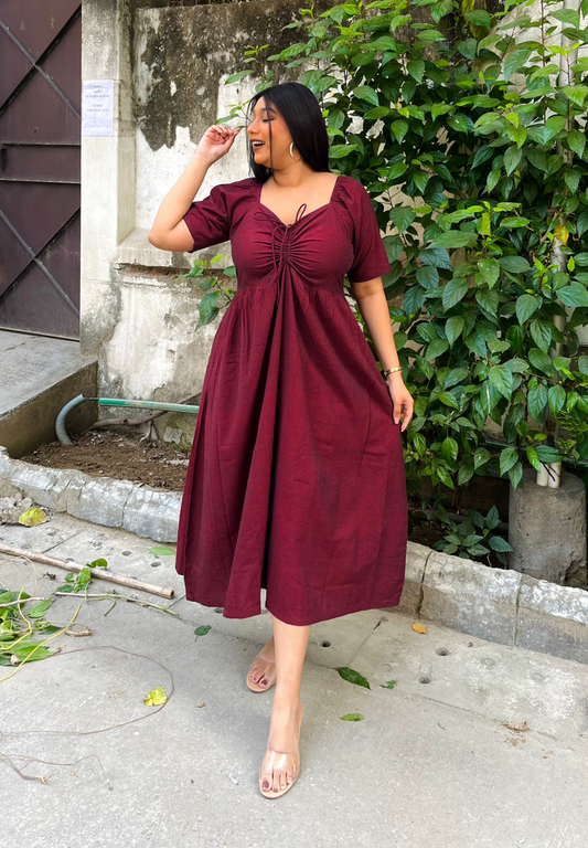 A lovely dress. Good quality material, nice cut and fit. My only disappointment is that I chose the colour as it looked red but got a much browner shade.