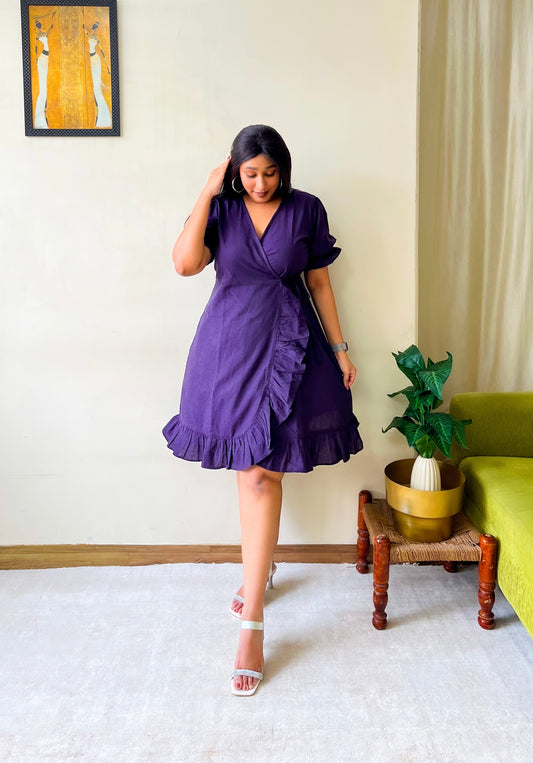 Sold outDark Purple Ruffle Wrap Dress