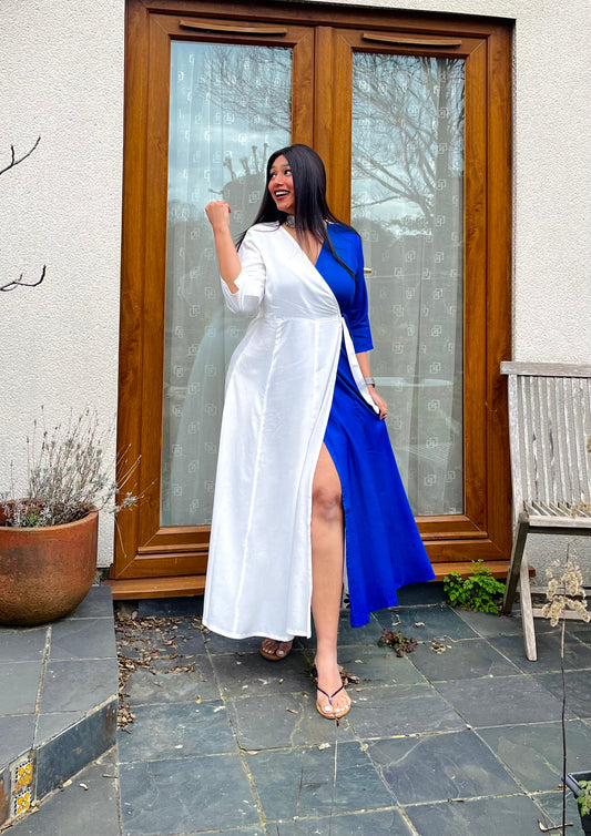 Sold outRoyal Blue Half & Half Wrap Dress