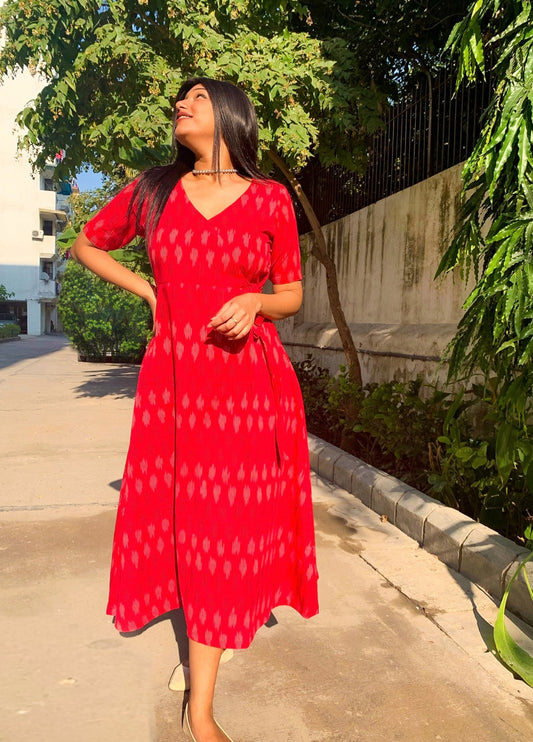 Sold outDeep Maroon Ikkat Wrap Dress