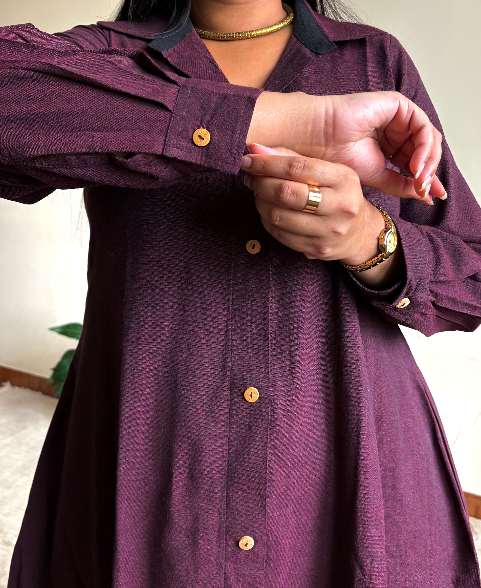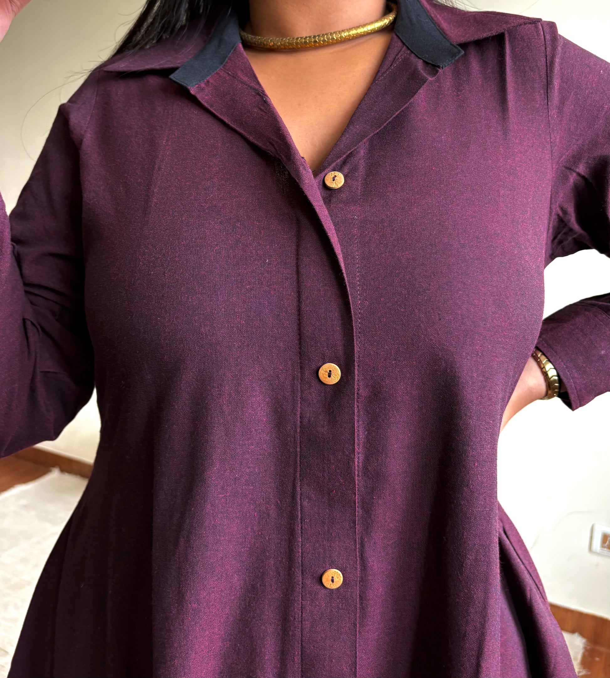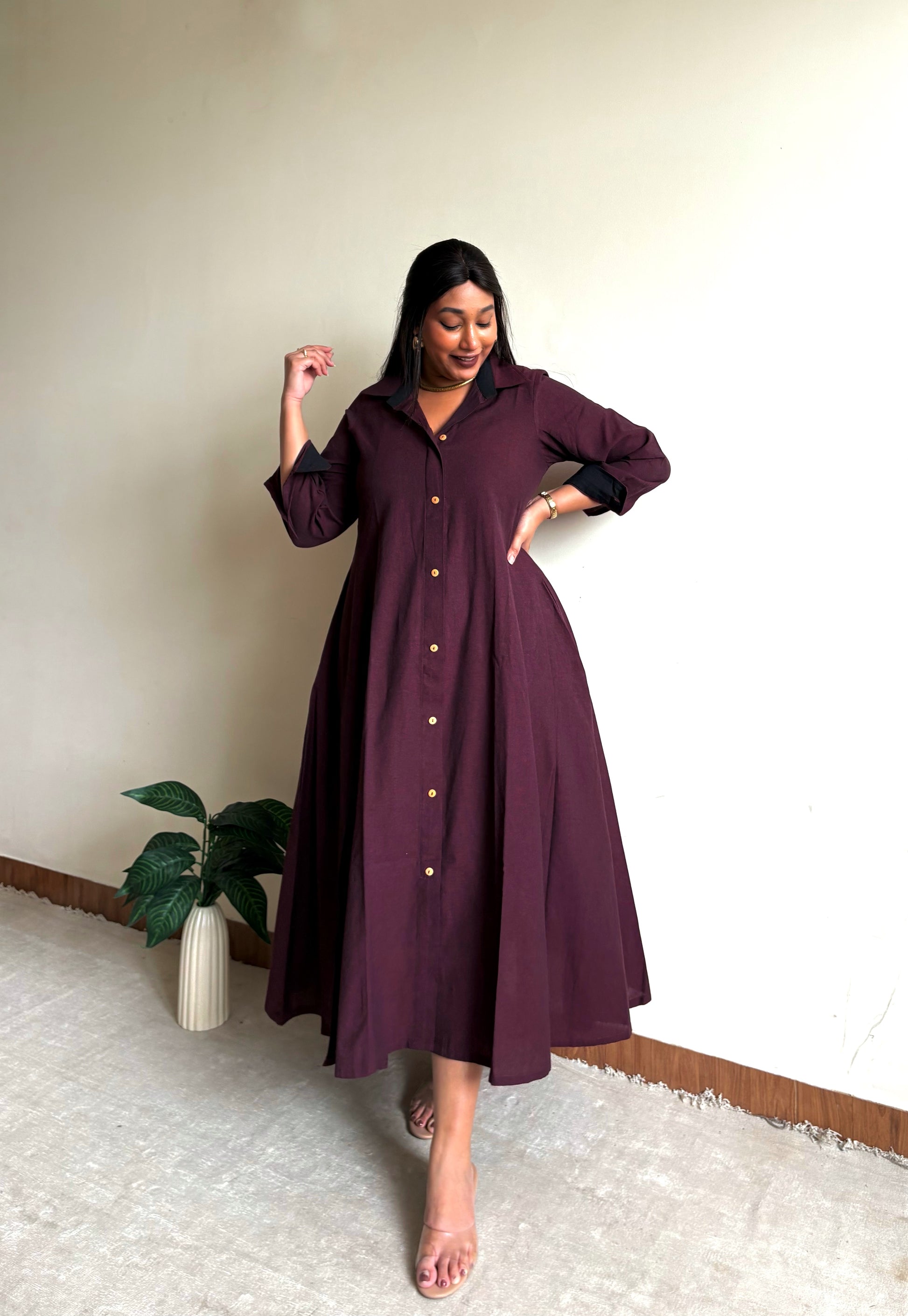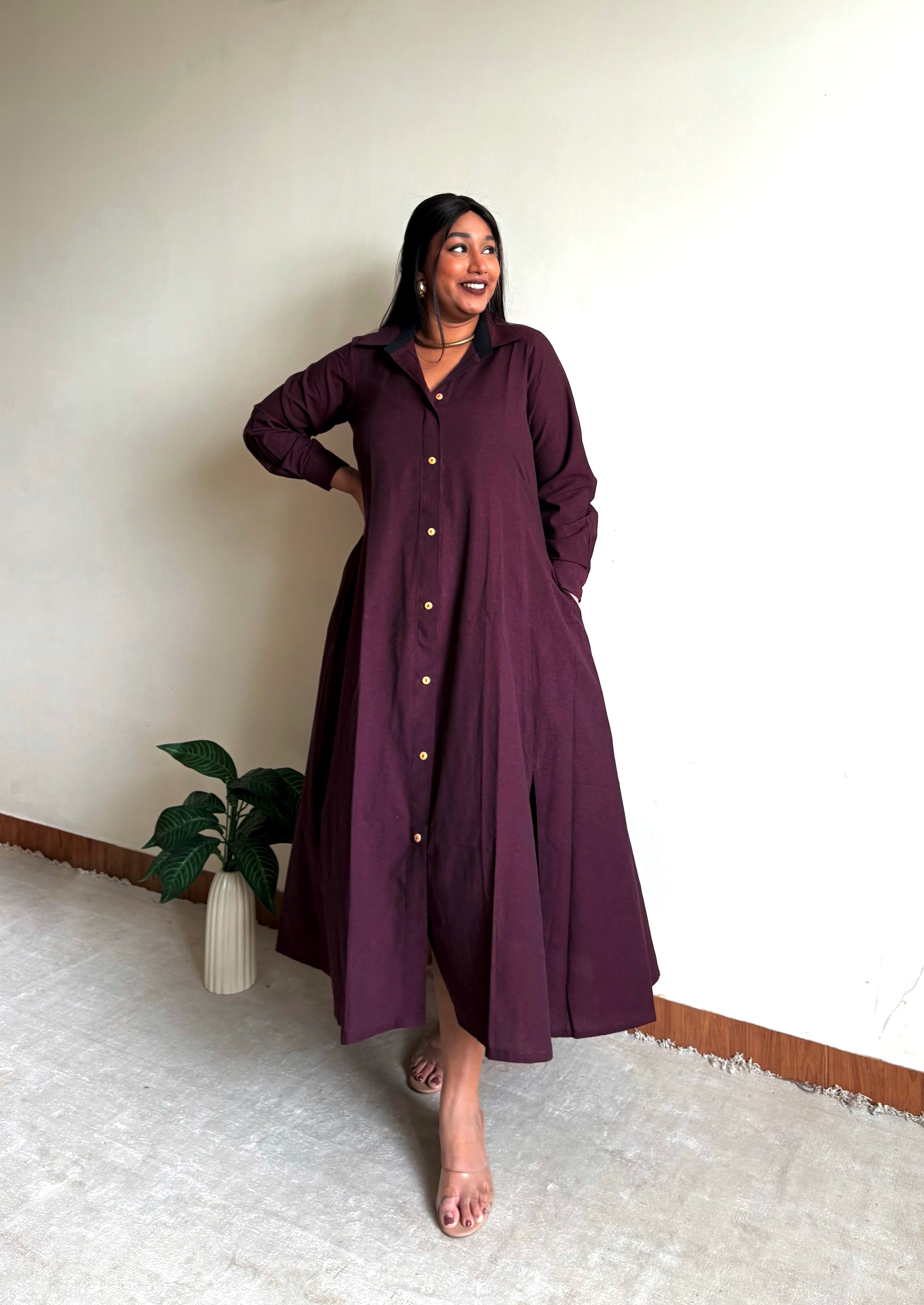 - Step into effortless sophistication with this Burgundy Shirt Dress.