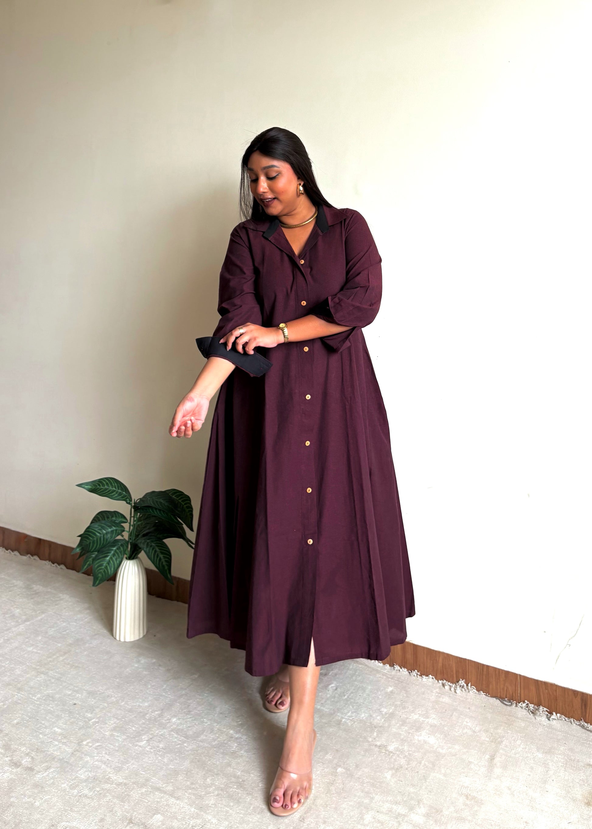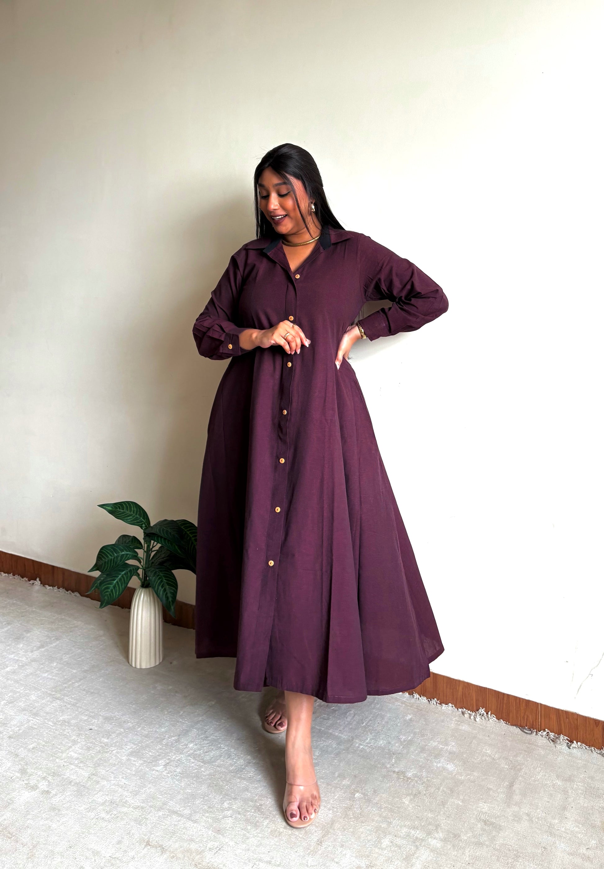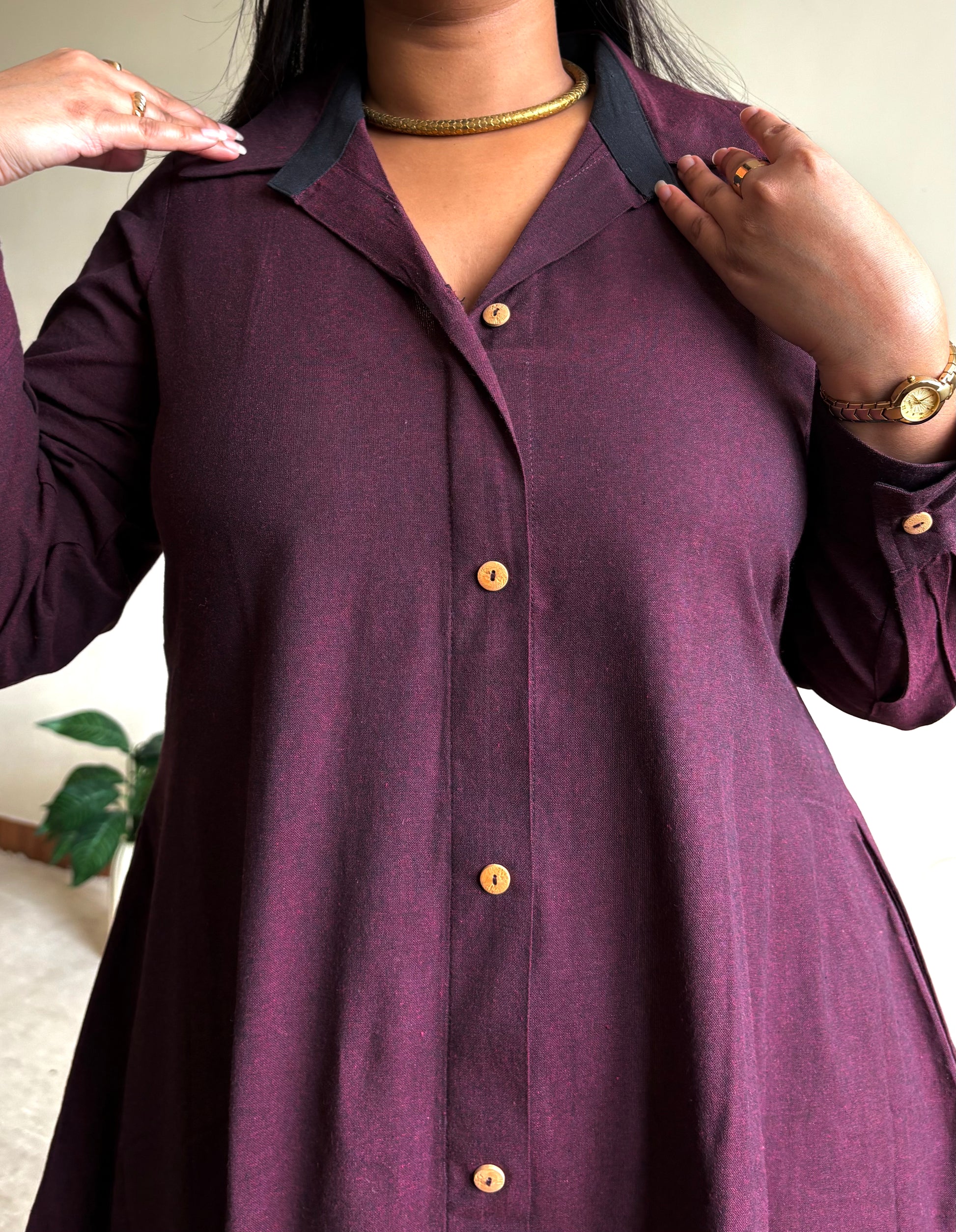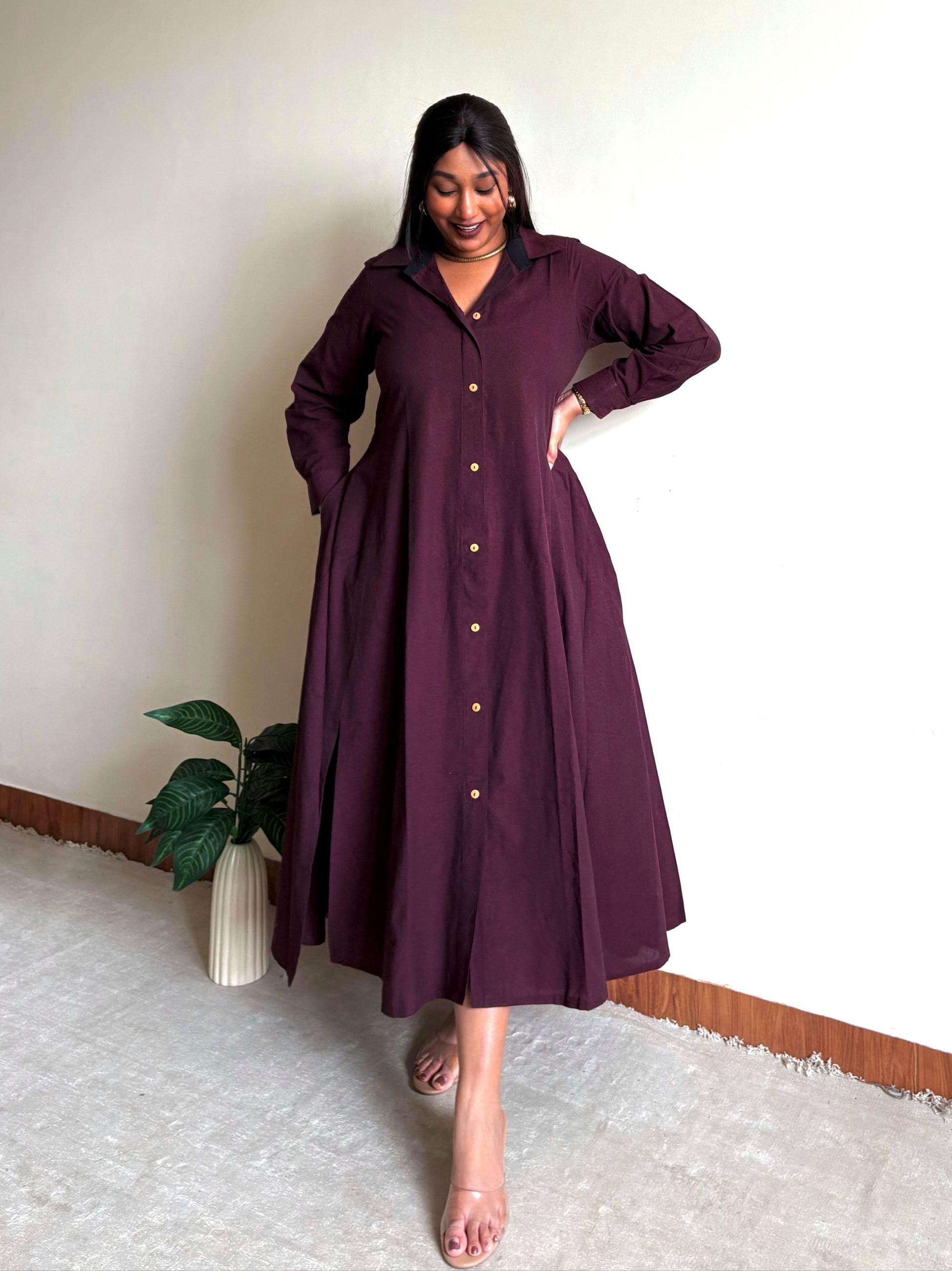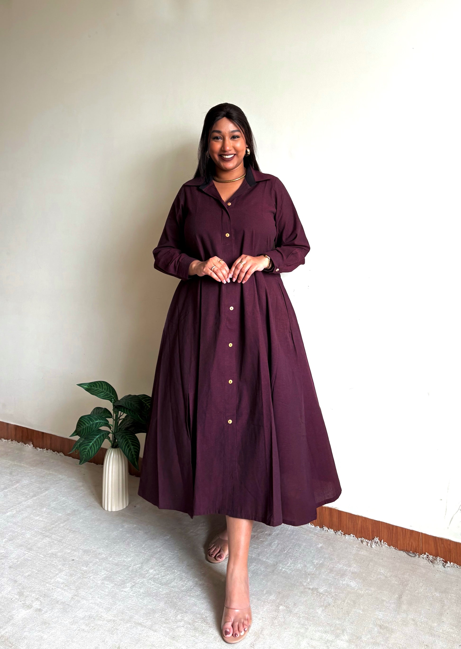 - Step into effortless sophistication with this Burgundy Shirt Dress.