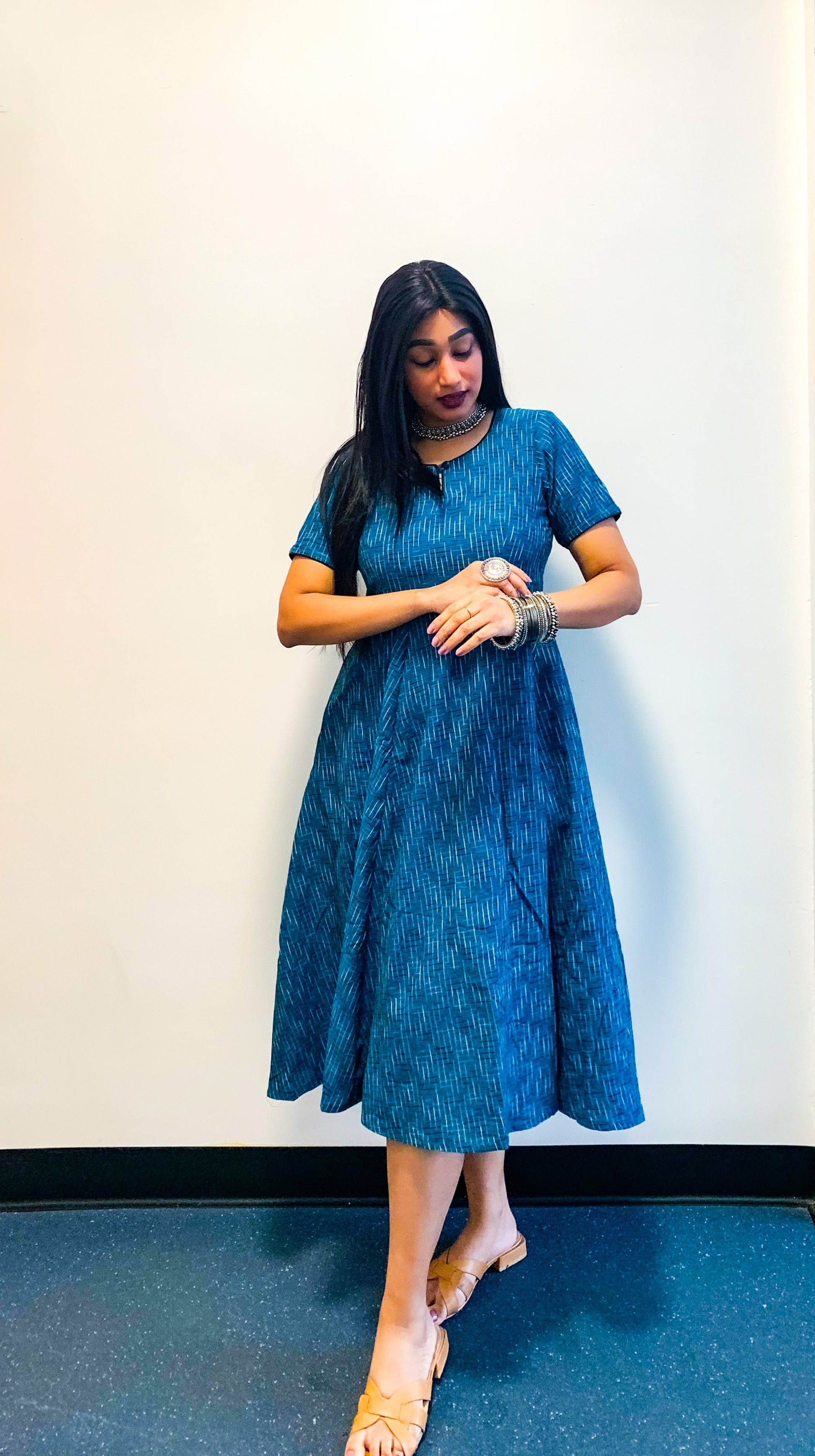 Embrace effortless style in our delicately crafted Flare Dress, designed to move with you and offer comfort for sizes up to 7XL and nursing-friendly wear. Made from Pochampally Ikat Cotton, it’s soft, breathable, and perfect for twirling through every moment with ease.