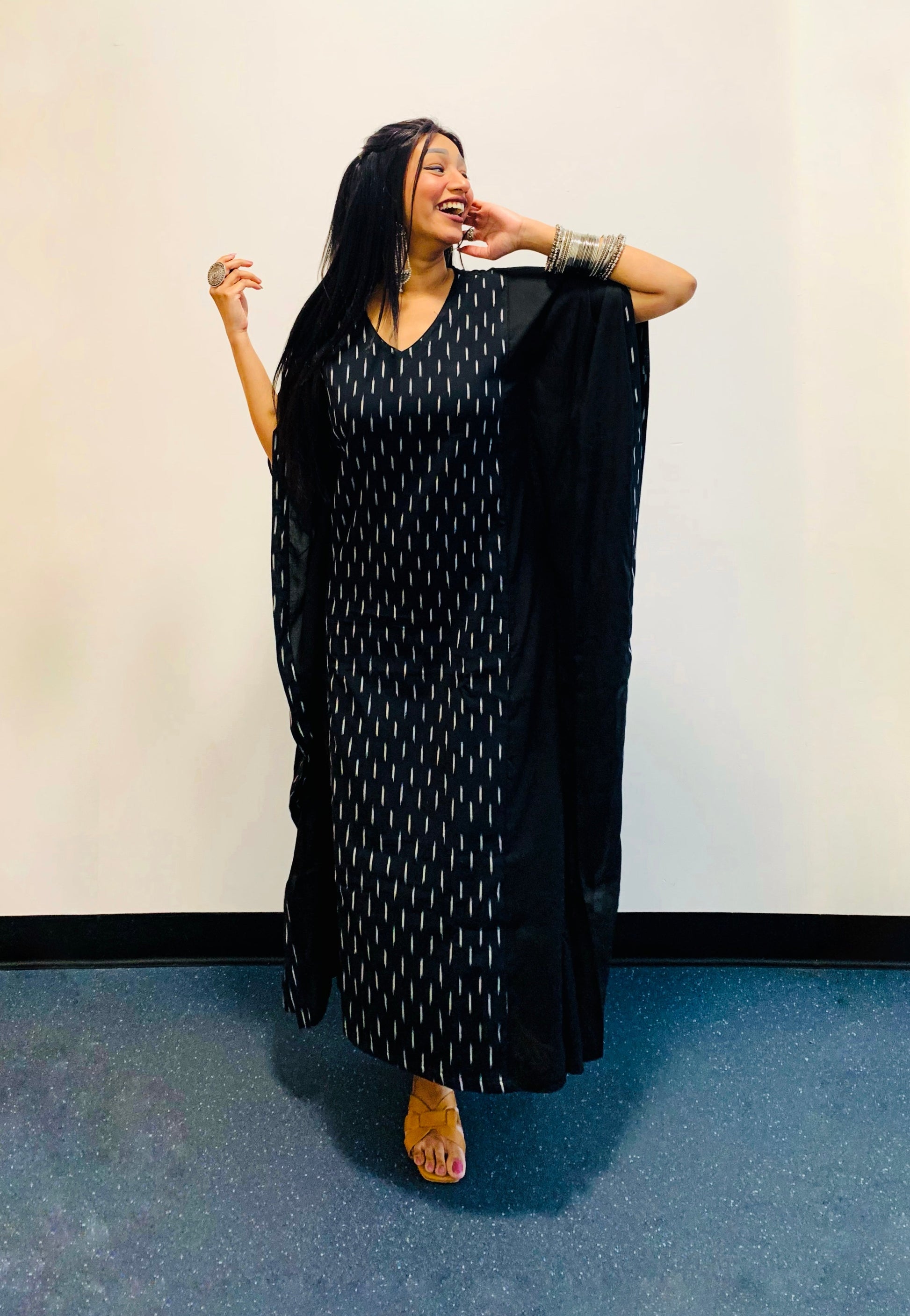 Black Ikkat Panel Kaftan
