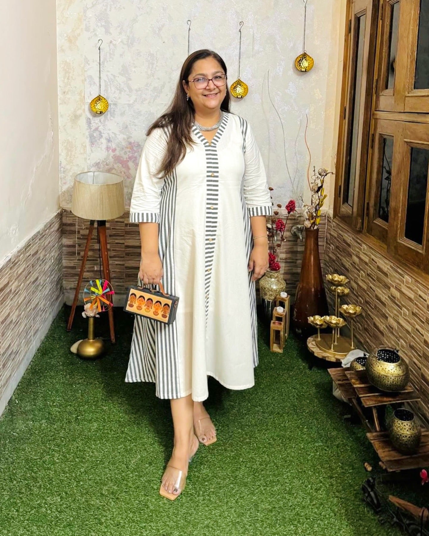 All our photos are clicked in natural light to closely represent the true colour of the actual fabric and the product displayed on the website. However, there are times when the camera lens cannot match the perspective of an eye and thus slight colour variation is unavoidable in the product. This is owing to a difference in screen resolution, brightness, and variation in devices. Some products and colours also tend to look slightly brighter in photos as the camera always highlights certain shades more.