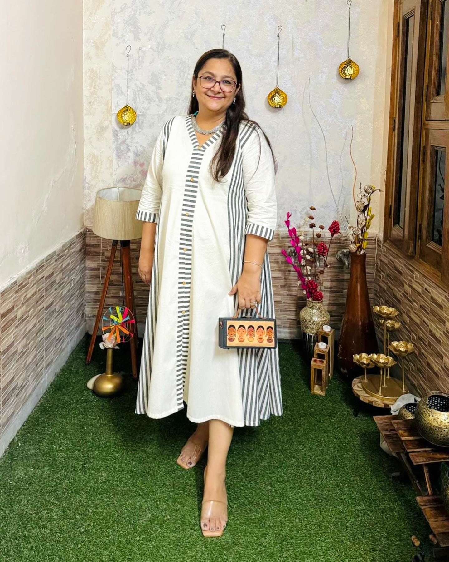 - Featuring an a-line patchwork ikkat shirt dress, handcrafted in a blend of earthy tones and modest detailing, for a professional yet stylish look