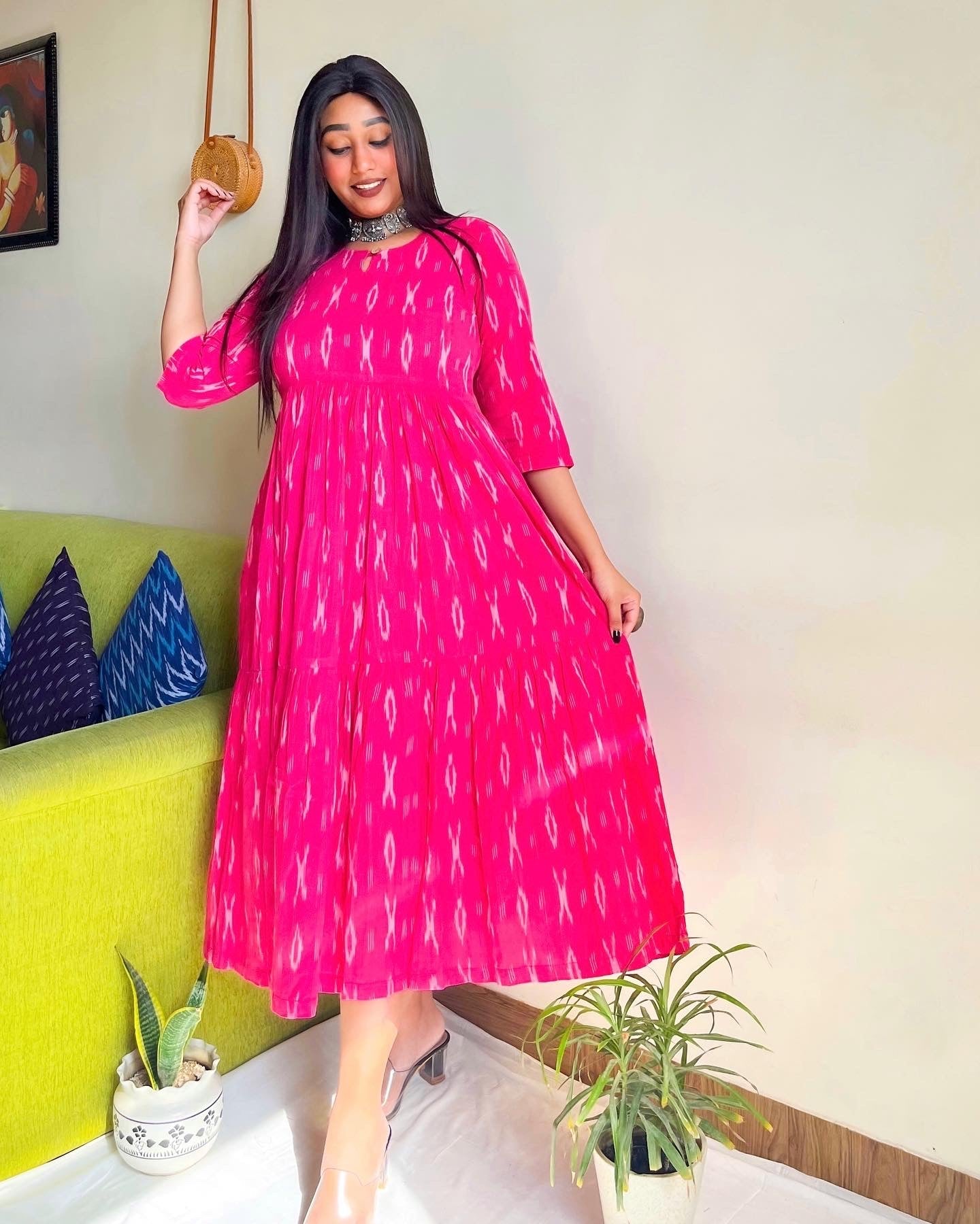 - Elevate your style quotient with our trendy collection of tier dresses that deliver a delightful fusion of fashion and functionality. Choose from an array of playful and eye-catching prints that exude a burst of colour while fulfilling all your twirl-worthy dreams!