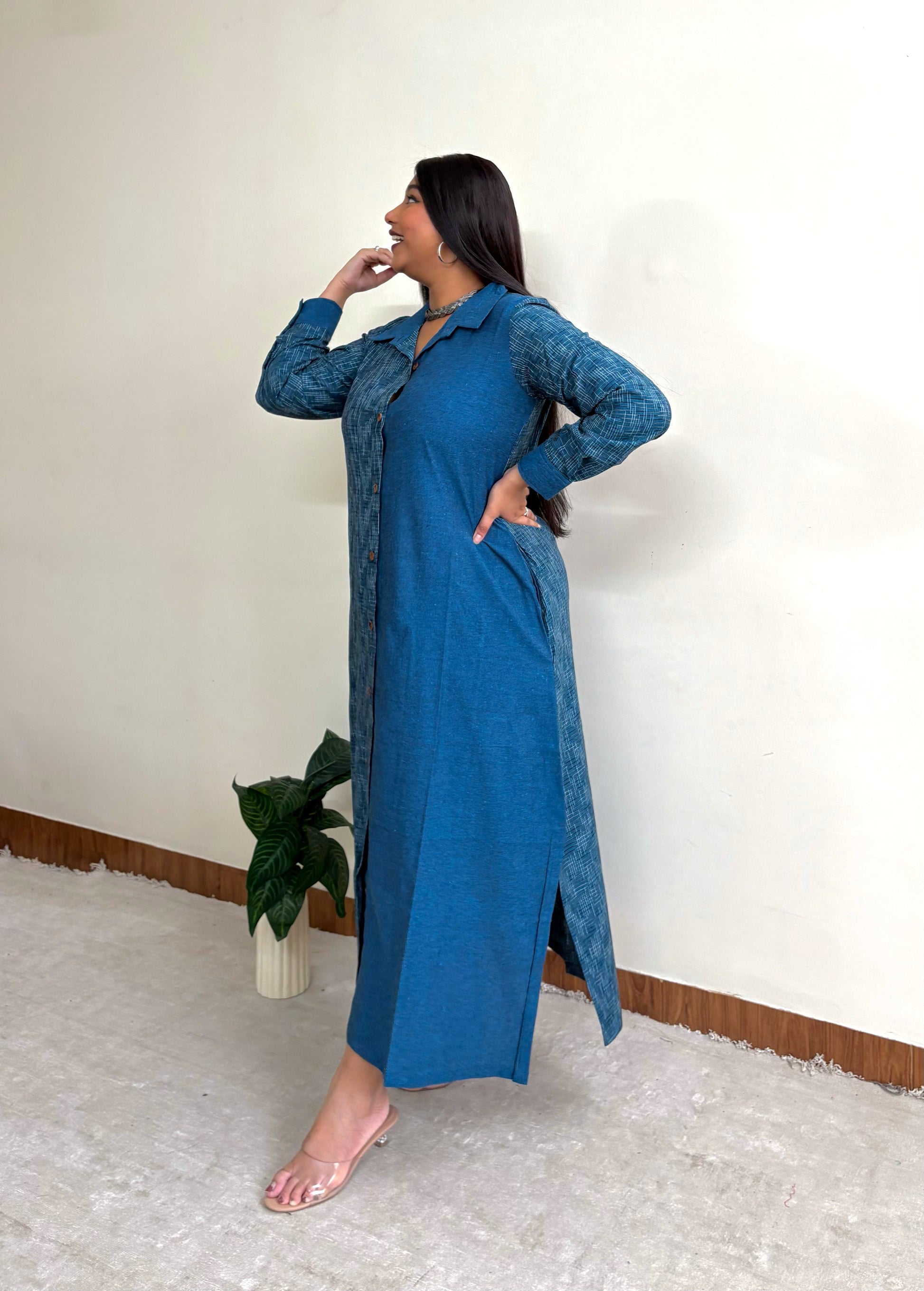 - Step into effortless sophistication with this Sapphire Teal Shirt Dress.