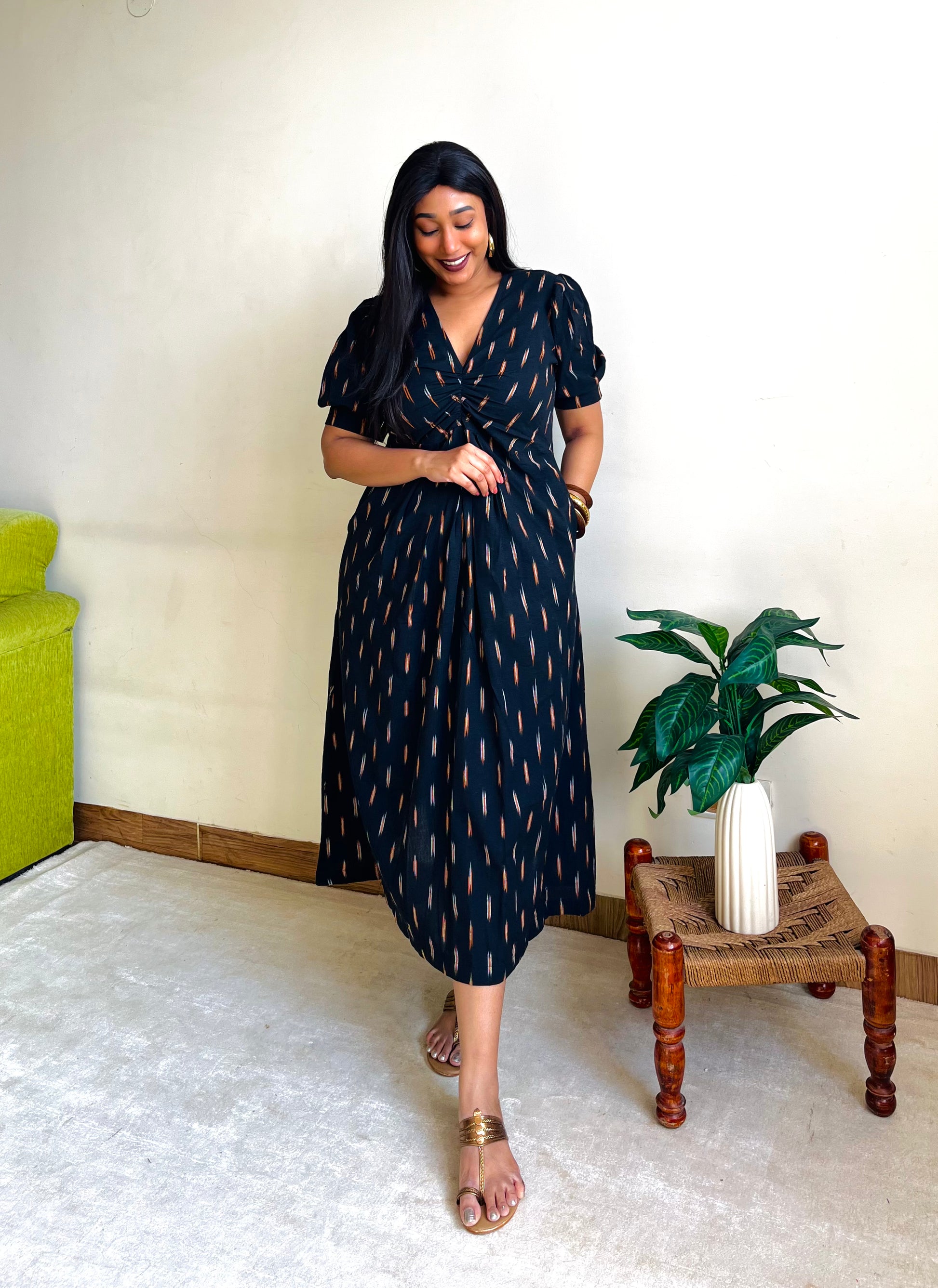 Our Knot Dresses offers a flattering silhoutte for all sizes up to 7XLMade in Pure Pochampully Ikkat Cotton, it is soft, breathable and perfect for everyday elegance and ease.