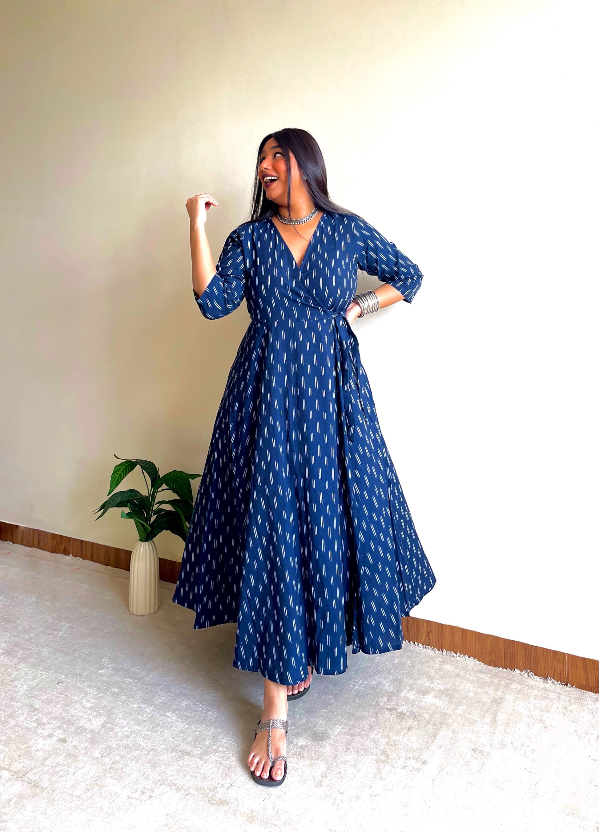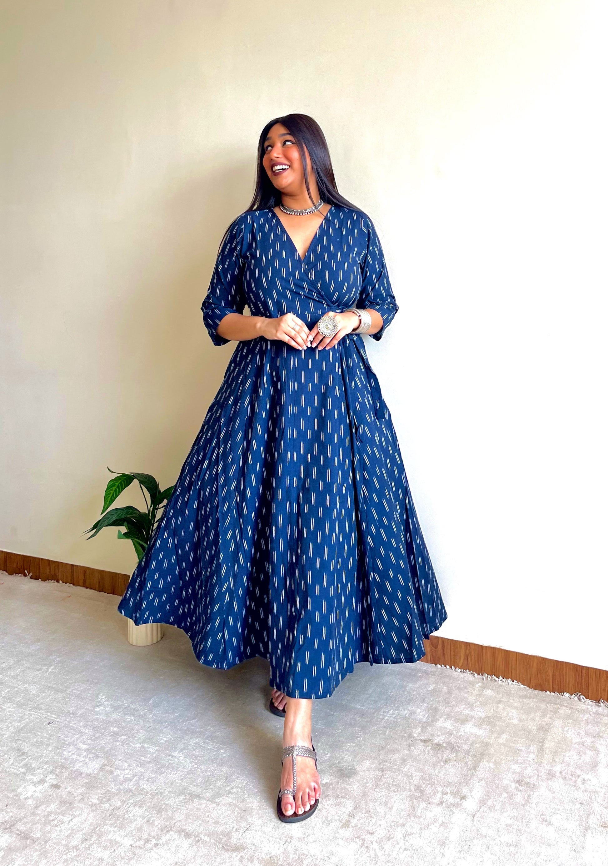 Our Wrap Styles combine timeless elegance, designed to flatter sizes up to 7XL. Made from Pochampally Ikat Cotton, it’s soft, breathable, and perfect for bump-to-beyond wear!