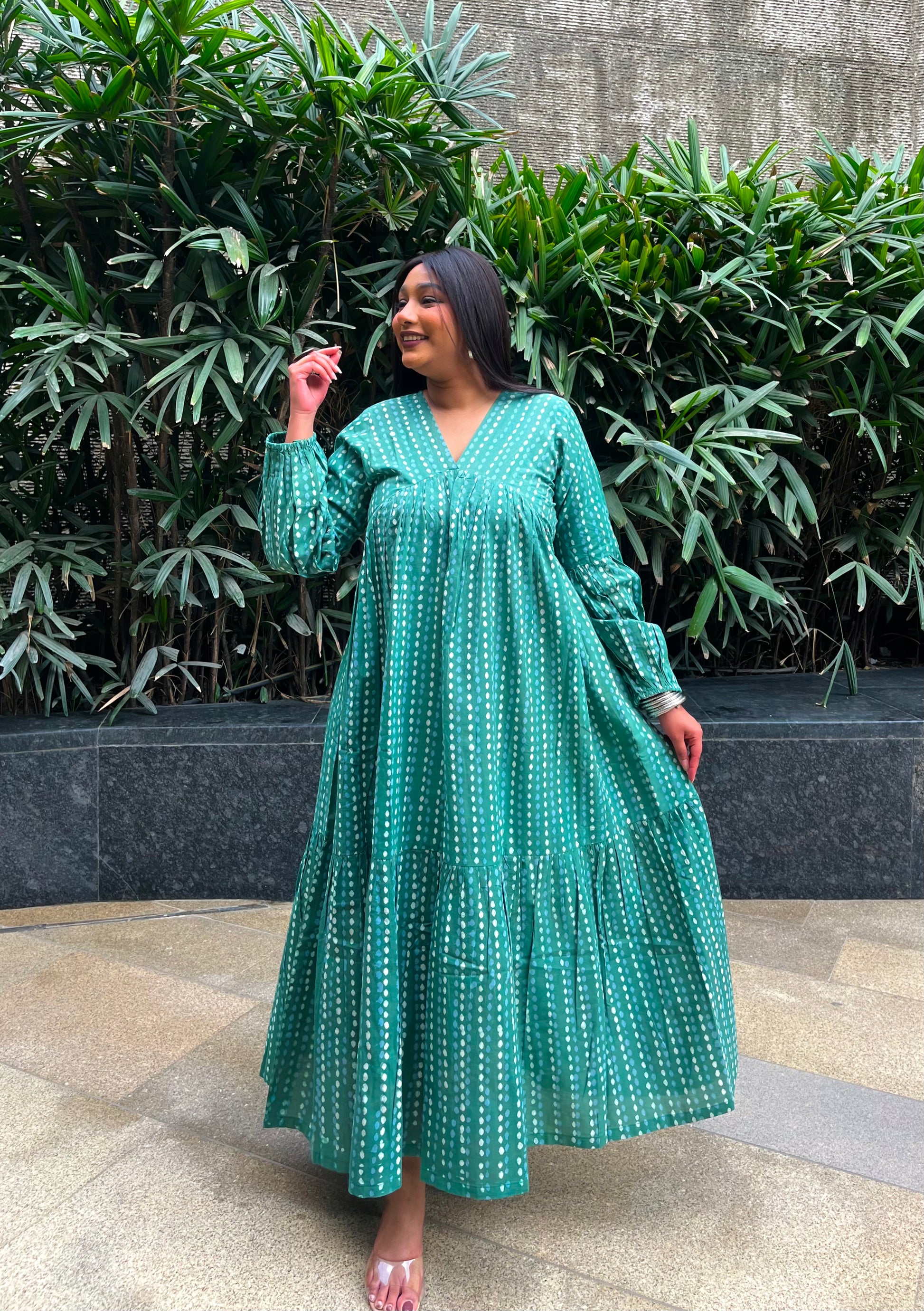 - The soft sea-green hue, adorned with delicate polka dots, adds a playful yet elegant touch—perfect for sunlit brunches, weekend getaways, or simply twirling through your day.